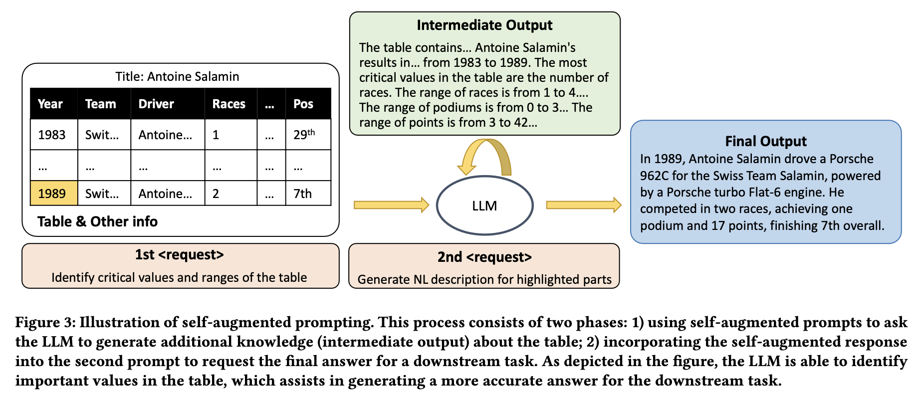 ์ด๋ฌํ ๋ฐ๊ฒฌ์ ๋ฐํ์ผ๋ก, ๋ณธ ์น์ ์์๋ LLM์ ์์ฒด ์ง์ ๊ธฐ๋ฐ ๋ด๋ถ ๊ฒ์์ ๊ธฐ๋ฐ์ผ๋ก ์ค๊ฐ ๊ตฌ์กฐ์ ์ง์์ ์์ฑํ๋ ๊ฐ๋จํ๊ณ ์ผ๋ฐ์ ์ธ ๋ฐฉ๋ฒ์ธ ์๊ฐ ์ฆ๊ฐ ํ๋กฌํํ (Self-augmented Prompting)์ ์ ์ํ๋ค.